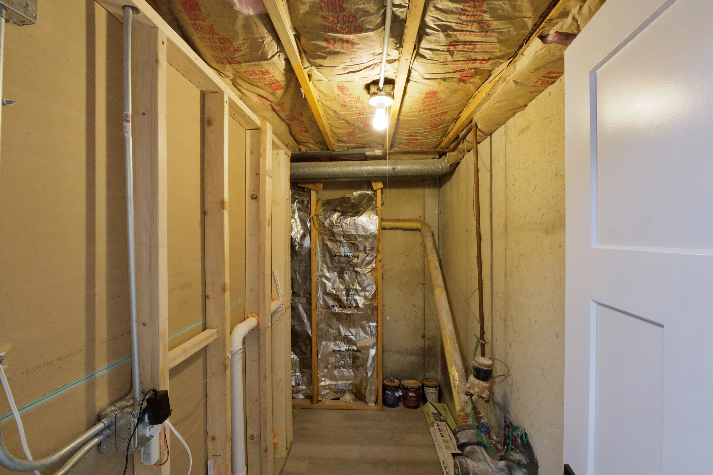 A spacious utility room offers abundant storage and convenient organization solutions.