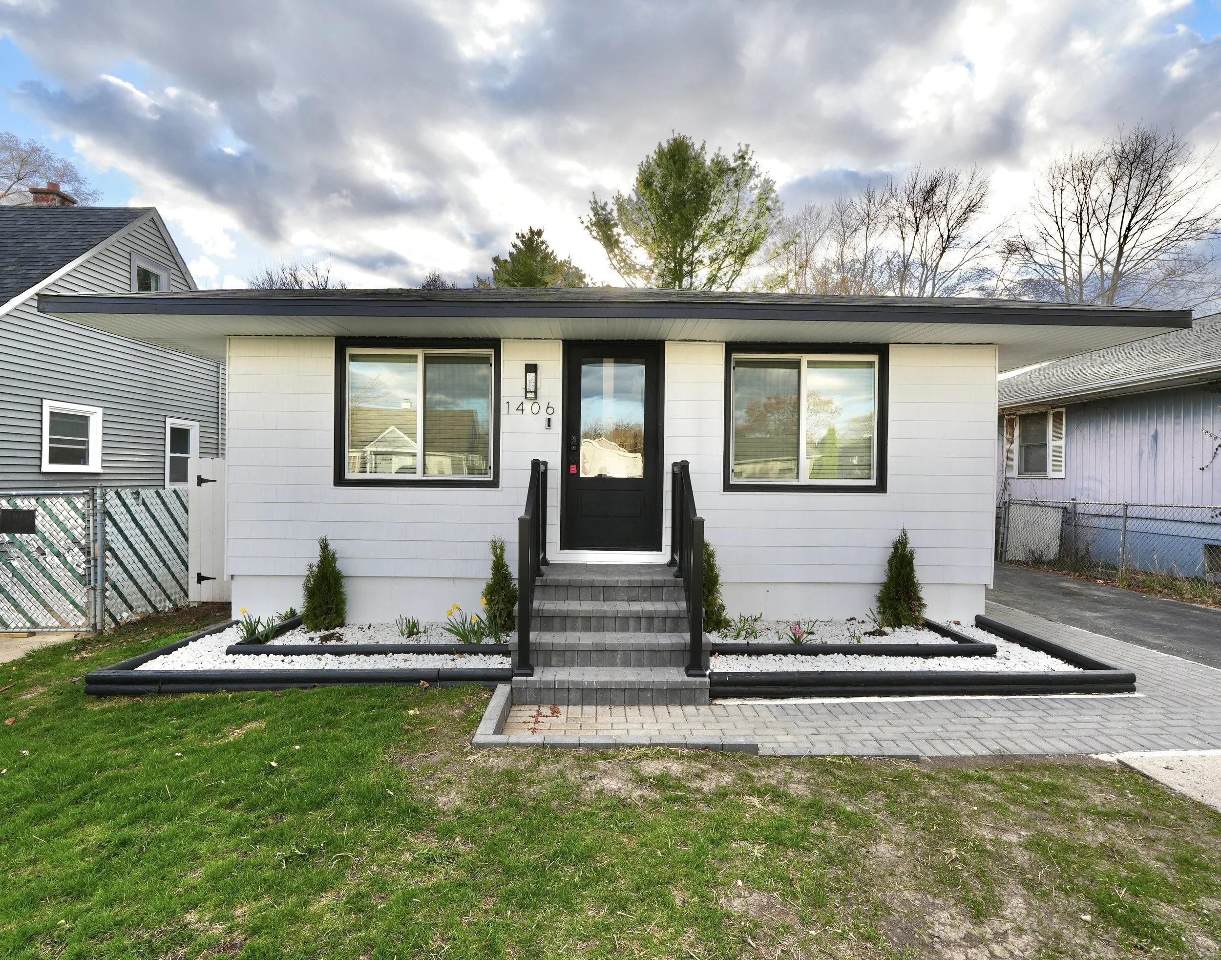 The home's exterior showcases exceptional curb appeal with extensive modern upgrades. The front façade features all-new siding complemented by freshly painted exterior walls, creating a clean and inviting look. New exterior doors and windows throughout enhance both style and energy efficiency, while modern exterior lighting highlights the home's architectural charm.